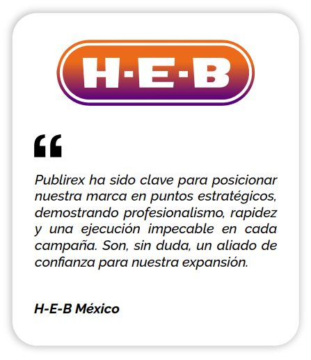 Imagina que tu marca se convierte en el punto de referencia en tu ciudad. Con Publirex, brindamos visibilidad continua en los lugares clave, así cada día más personas conocerán tu producto o servicio, verás el impacto directo en tus ventas.
