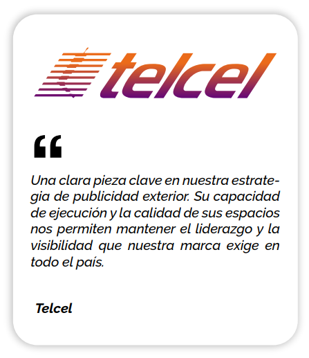 Desde 1994, expertos en publicidad exterior con espectaculares, pantallas digitales y producción 3D, ofreciendo más y mejores espacios para una cobertura nacional efectiva.